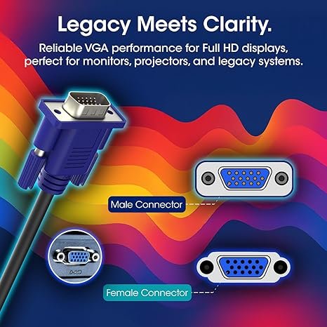 Kado by Sceptre VGA Cable 5ft, Video Graphics Array 1920×1080 FHD 60Hz High Speed, Male-to-Male 1.5m Genuine Parts Made for Sceptre Monitor, TV, PC, TV Box, Gaming Console, Projector